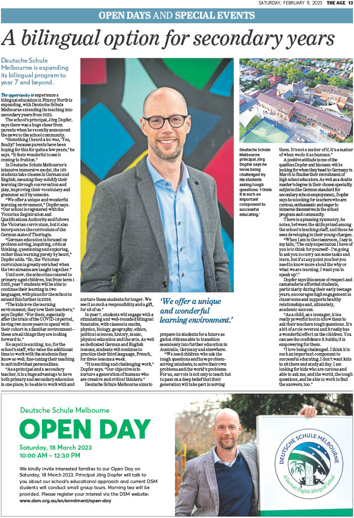 Die Zeitung Sunday Age hat unsere Schulleiterin, Bernice Ressel, zu den Vorteilen einer bilingualen Schulbildung an der Deutschen Schule Melbourne befragt.